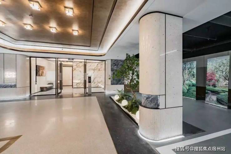售楼处电话:【预约看房热线】招商中旅·揽阅售楼处电线【售楼处电话/地址】招商中旅·揽阅售楼处电话:【开发商认证】入户大厅的部分外墙上也采用香槟金与部分灰色石材,门头雨棚采用香槟金色弧形装饰,搭配大玻璃面,尊崇感呼之欲出。
