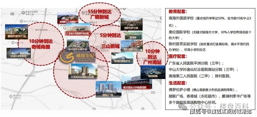 项目辐射 5 公里范围内,汇聚了顺德拔萃实验学校、美伦国际学校、南海外国语学校等多所知名学校,构建了从幼儿园到高中的全龄教育链条。