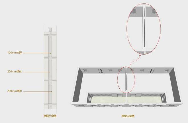 与其他风貌共用一堵分户墙不同的是,忻园的风貌别墅采用双层分户墙做法,每户之间没有共用墙。200mm厚度的墙体,中间还设置了100mm空腔,避免邻里的相互影响,带来舒适静谧的居住感受。