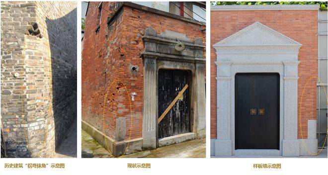 为了呈现立面的精细化,项目更是运用了60多种定制砖,尽显品质感。在建筑的拐角处,延续现状并结合历史建筑中“拐弯抹角”的做法,把转角隅石优化为弧形。“上方下圆”的抹角设计,不仅体现了通行方便安全,也是一种谦和,更是一种传统美德,表达街坊邻里间和谐友善的氛围。