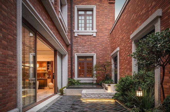 项目外立面并非简单模仿传统样式,而是通过对孟莎式屋顶、清水红砖外墙、传统石库门门头、老虎窗等元素的保留与转译,实现海派建筑语汇的当代延续。