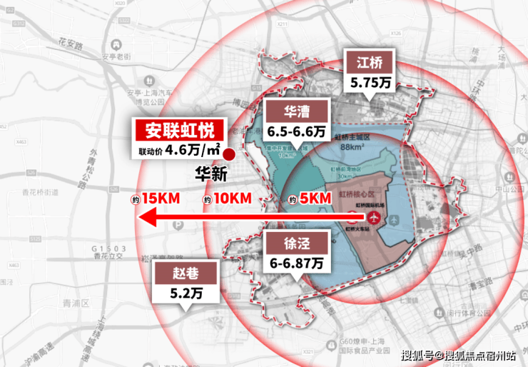 安联·虹悦所在的华新板块,位于青浦东北角,直线公里,近距离承载虹桥与长三角乃至全球的联通功能。