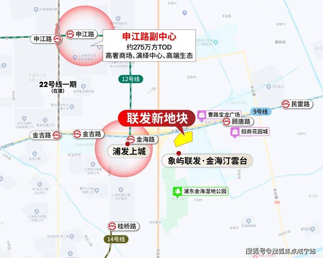 一座是金湾:一座4条轨交5站点(9、12、14和规划崇明线万平方的TOD站城;