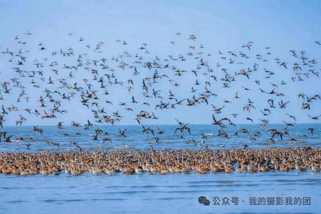 是单一或者多种鸟类组成的,优势互补,各司其责,为了生存共进退的鸟类团体。大辽河口湿地用洁净滩涂与丰沛食物,吸引数十万只鸻鹬、鸥类、雁鸭等水鸟在此停歇,潮起潮落间,便上演 “万鸟齐飞如浪涌” 的自然奇观。